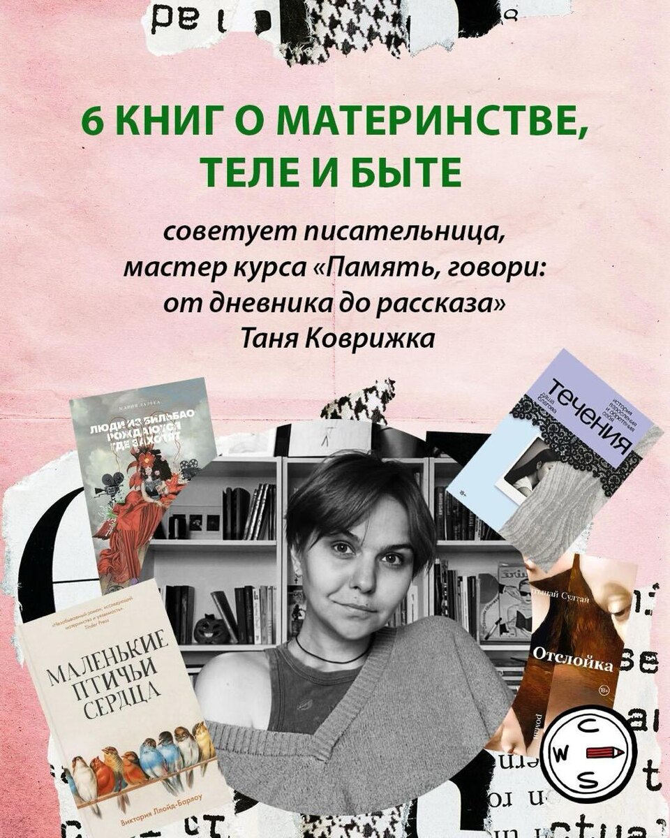 6 книг о материнстве, теле и быте — советует Таня Коврижка Слово мастеру курса «Память, говори: от дневника до рассказа»: Почему тексты о материнстве, теле и повседневности должны быть интересны другим? Кажется, это слишком личное, даже запретное: о родах, сексе, быте «не принято» говорить. Но именно такие истории важны. Сегодня уязвимые голоса могут быть услышаны — и литература дает нам возможность рассказать то, что раньше замалчивалось. Чем больше мы знаем о жизни других, тем лучше понимаем себя и тем выше качество нашей собственной жизни. Книга — это не только искусство, но и инструмент: она должна приносить удовольствие, повод для размышлений, поддержку. Поэтому тексты о материнстве и быте могут быть не менее ценными, чем любые другие. Образ матери в культуре долгое время был искажен: страдалица, чудовище или идеальная женщина за белым заборчиком. В реальности все сложнее. Именно поэтому нам нужны новые книги — честные, многогранные, показывающие женщин такими, какие они есть