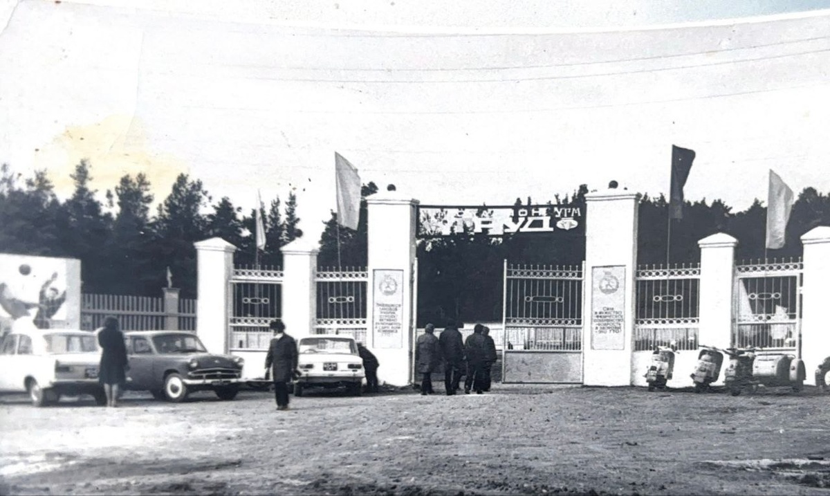 📸Перед Вами архивное фото главных ворот на стадионе «Труд» в Сысерти, запечатлённое в далёком 1974 году