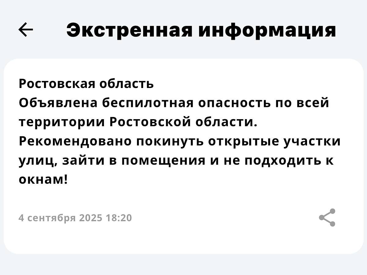 ❗️РСЧС: В Ростовской области объявили беспилотную опасность ‼️