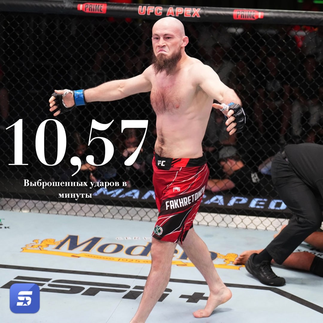 На #UFCParis 🇷🇺 Ринат Фахрутдинов — единственный боец из России в карде! И он идёт в бой с отличной статистикой: 10,57 ударов в минуту при точности 51% 👊. ⚡️ В соперниках — шведский «железный» Андреас Густафссон 🇸🇪. Его темп почти такой же (10,37 ударов в минуту), но точность выше — целых 76% попаданий! 🎯