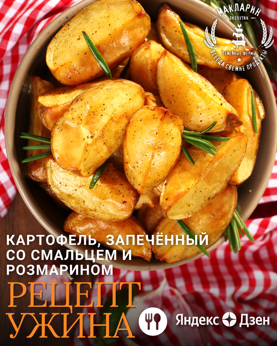 🥔 Ингредиенты: - Молодой картофель — 500 г - Смалец — 3 ст. л. - Розмарин — 2 веточки - Чеснок — 3 зубчика - Соль, перец — по вкусу - Зелень 🍢 Рецепт: 1. Картофель разрезать пополам. 2. Растопить смалец, добавить измельченный розмарин и чеснок. 3. Обвалять картофель в ароматном смальце. 4. Запекать при 200°C 30–40 минут до хрустящей корочки. 5. Посыпать любимой зеленью. Почему стоит готовить на смальце?🤔 - Высокая температура дымления — не горит, не чадит. - Натуральный вкус — подчеркивает аромат блюд. - Богат витаминами D, E, A. - Идеален для хрустящей корочки. С любовью, Команда бутиков «МАКЛАРИН»! 💘