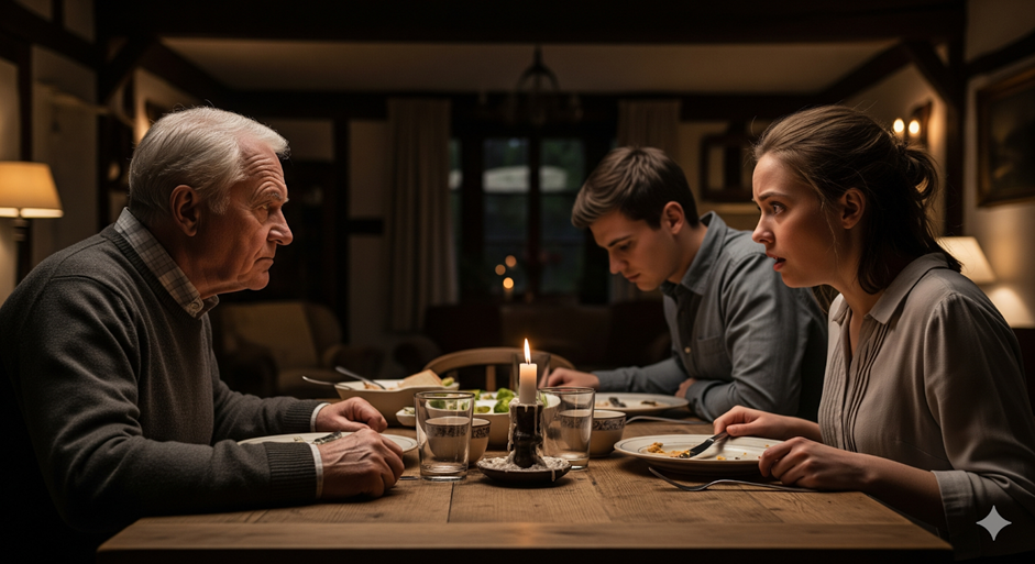 Марина сидела за столом, но не могла есть. Слова Петра Ивановича, как острые осколки, резали душу. И самое страшное — это молчание Саши. Она с трудом дождалась, когда отец уйдёт. Он, как обычно, даже не попрощался. Просто встал и ушёл, оставив их одних. Наконец.
