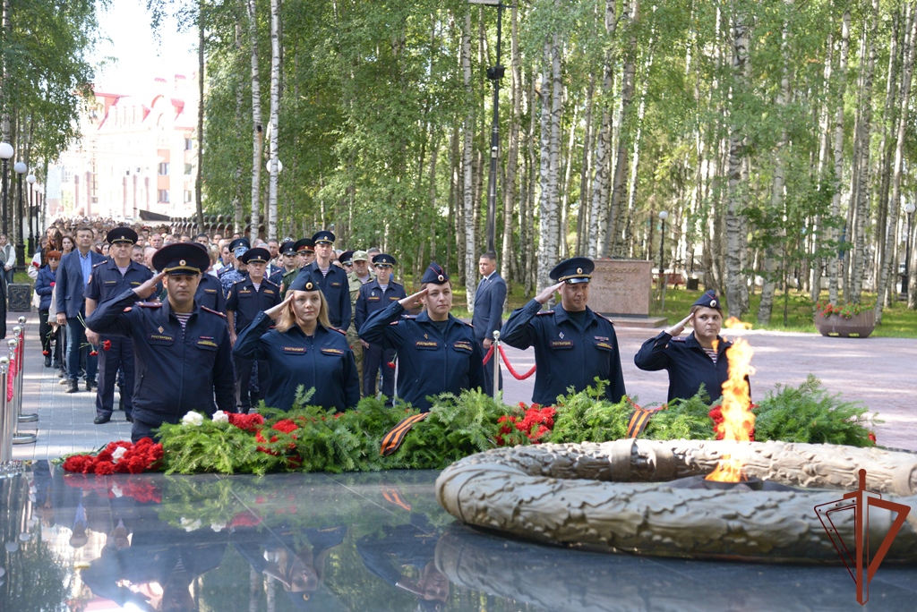 Кроме этого, росгвардейцы почтили память сотрудников правоохранительных органов, погибших при исполнении служебного долга. В Сургуте офицеры войск правопорядка приняли участие в церемонии у Мемориала Славы, а в Кургане – в подшефной школе.