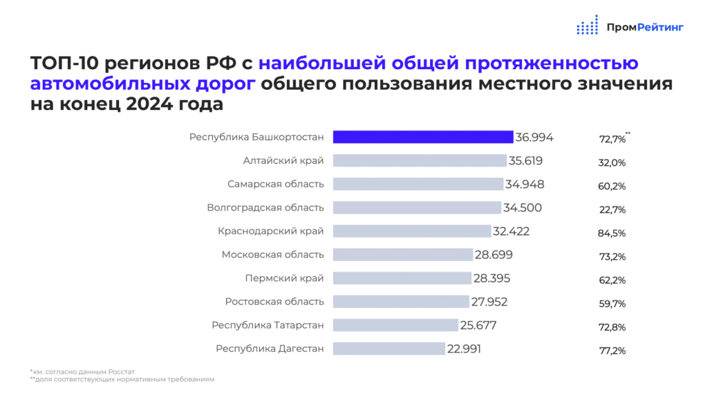 Только 22% волгоградских дорог соответствуют нормативам. Такие данные представили аналитики исследовательского агентства «ПромРейтинг». Волгоградская область вошла в топ-10 российских регионов с максимальной протяженностью автодорожной сети в конце 2024-го года, заняв четвертое место в рейтинге. На регион приходится 34 500 км магистралей общего пользования местного значения. При этом нормативным требованиям соответствуют только 22,7% магистралей. В отдельный рейтинг выделены грунтовые дороги, столь непопулярные среди российских автомобилистов. Исходя из оценки на конец 2024-го года, их суммарная протяженность в стране составила 415 943 километра, что эквивалентно 41% от общей их длины. Это когда заканчивается асфальт и начинается естественный природный грунт. И тут Волгоградская область стала безусловным лидером. На нее приходится 26 343 км, общая протяженность грунтовки составляет 76,4%. Ранее мы писали, что на одном из самых загруженных перекрестков Центрального района Волгограда —