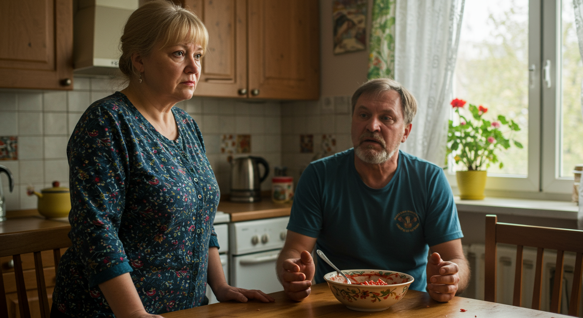 Голос Дмитрия, как всегда, заполнил собой всю небольшую кухню стандартной «панельки» на окраине Ярославля. Густой, уверенный, не терпящий возражений. Он не смотрел на жену, его внимание было приковано к экрану телевизора, где мелькали кадры вечерних новостей. Елена вздрогнула, словно от холода, хотя на кухне было тепло от готовящегося ужина. Она медленно поставила на стол тарелку с нарезанным хлебом.