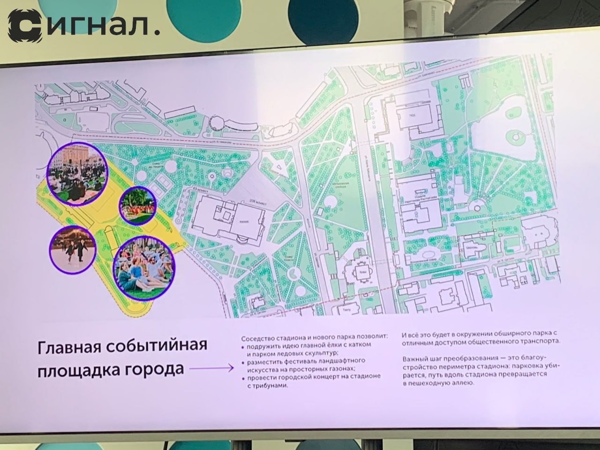 В Екатеринбурге создадут гигантский Главный парк по образцу московского «Зарядья». Проект, который, объединит территорию от стадиона «Динамо» до Харитоновского сада, был представлен на заседании Совета неравнодушных граждан. В новом парке планируется разместить главную городскую ёлку и ледовый городок, проводить фестивали, ярмарки и концерты. Также здесь появятся уникальные детские площадки, например, «космический Ноев ковчег».