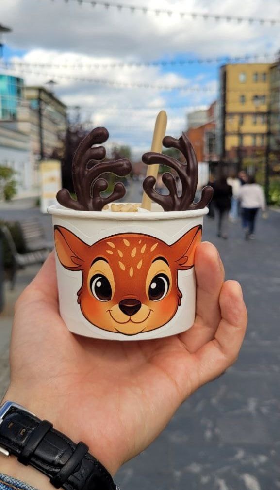 ✨ В Тюмени появилось рогатое мороженое! Да-да, не показалось — вот такое милое чудо можно попробовать прямо на улице Дзержинского! 🍨 Состав простой, но со смыслом: — пломбир, нежный и сливочный; — кедровые орешки, чтобы напомнить о Сибири; — шоколадные рога — для полного портрета «тюменского олененка». Хотел бы тоже попробовать такой десерт? Место: Ищи на улице Дзержинского в фургончике у Флигеля Новоселова, ул. Хохрякова, 21