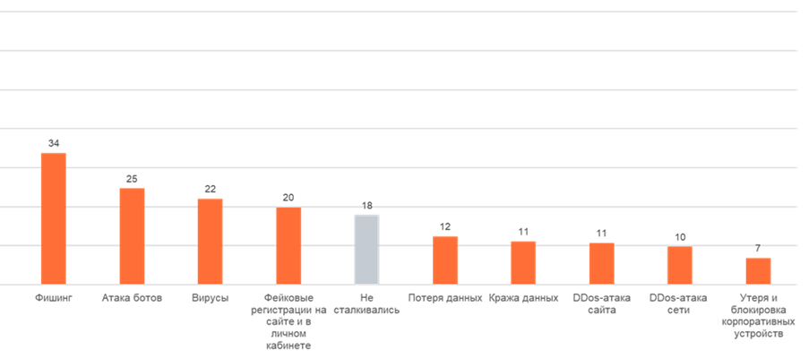 Рисунок 2. Типы и частота киберугроз для представителей СМБ, значения указаны в процентах (%).