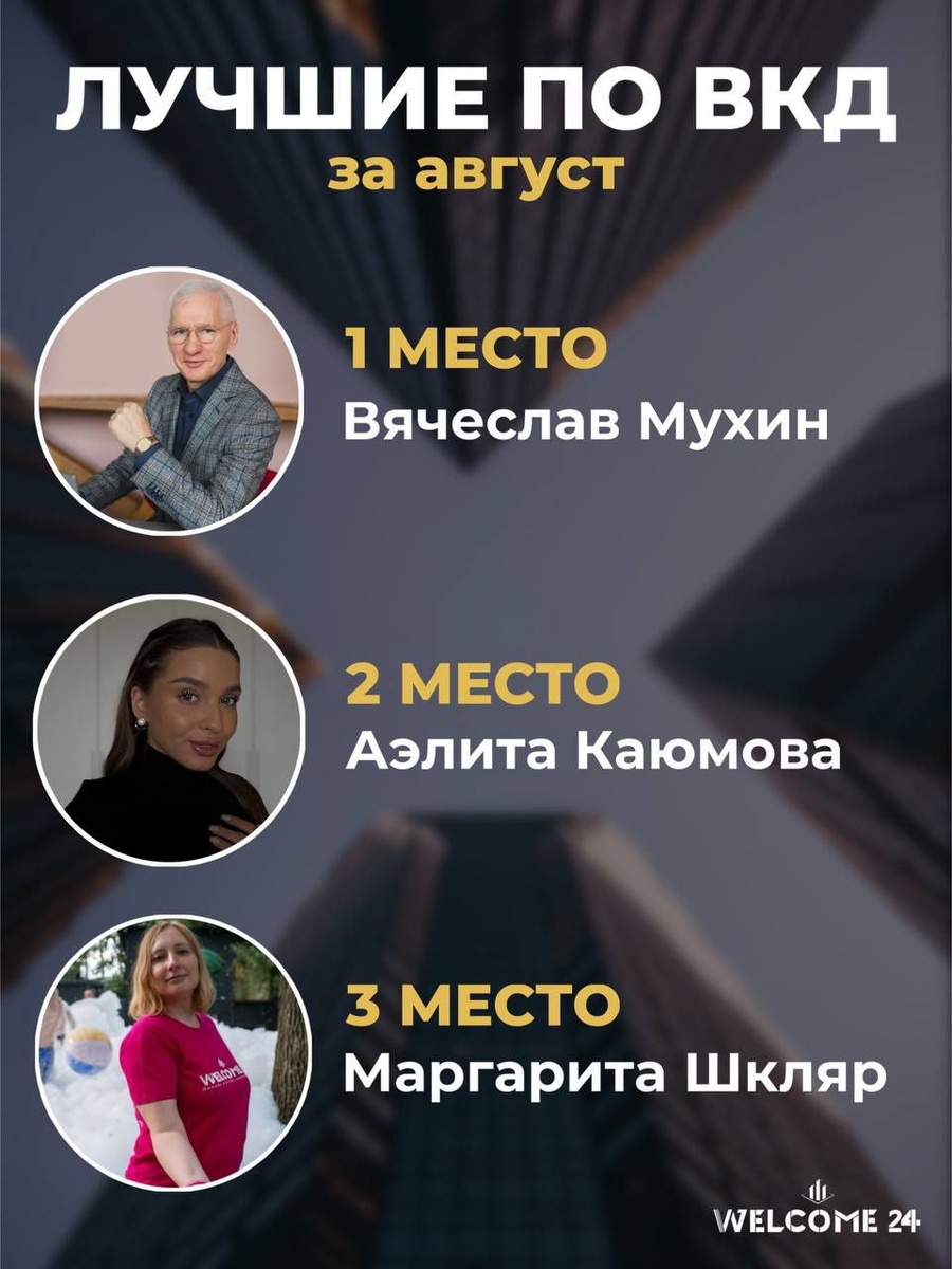 Я календарь переверну… И снова третье сентября 🍂 Лето пролетело так быстро, что мы уже подводим итоги августа, и без рекордов не обошлось 😎 🏆 Лучшая тройка агентов по ВКД в нашем онлайн-агентстве недвижимости «Вэлком24»: 1️⃣ Вячеслав Мухин 2️⃣ Аэлита Каюмова 3️⃣ Маргарита Шкляр А ещё в августе мы побили рекорд по количеству объектов на всех рекламных площадках 🔥