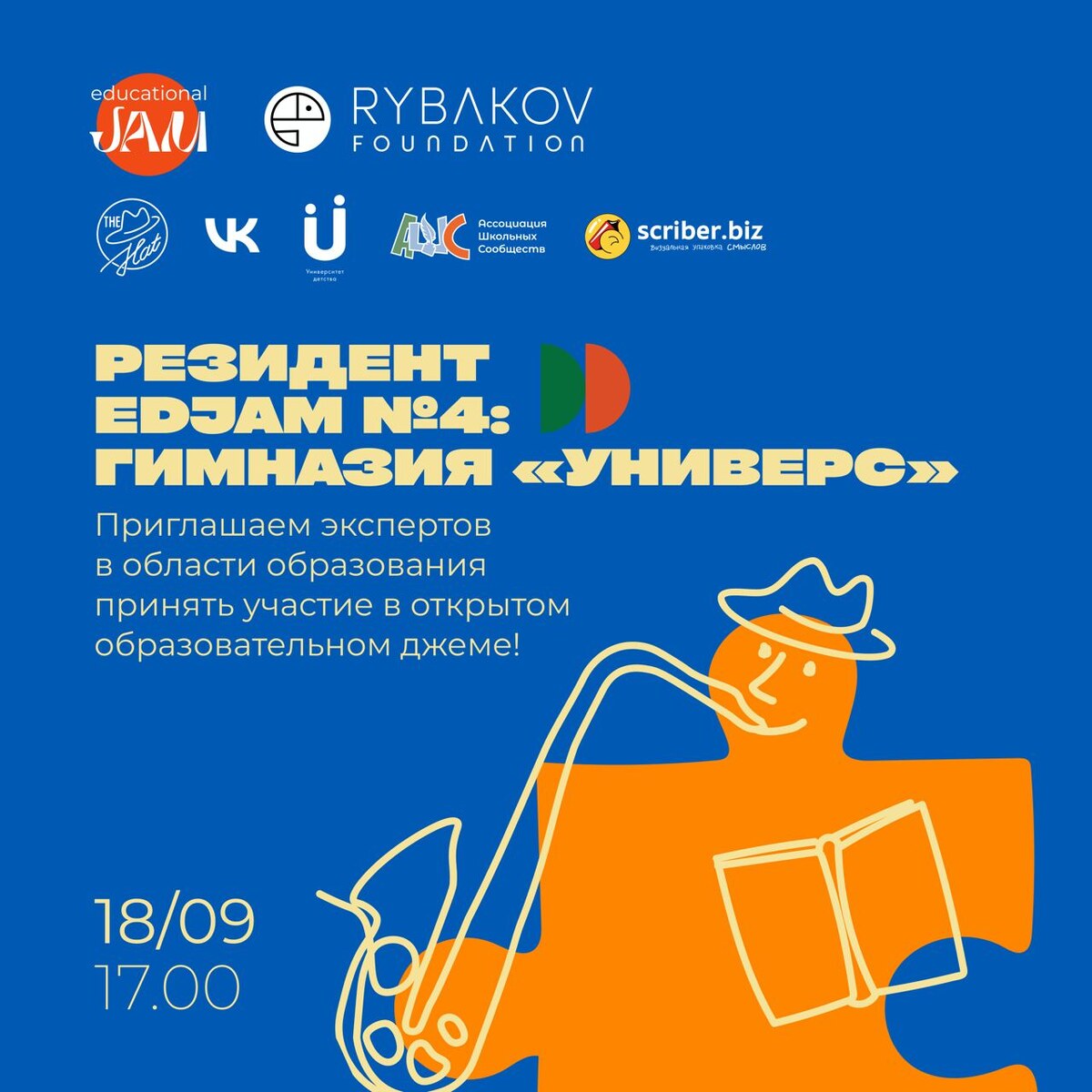 Educational JAM возвращается! Сегодня в образовании нет универсальных рецептов — но есть сообщество людей, готовых искать решения вместе. Мы рады вернуться с летних каникул и открыть новый сезон образовательных джемов, на которых будем решать задачи со звёздочкой в атмосфере сотворчества, открытого диалога и звучания джаза Образовательный джем — открытая проектировочная сессия, вдохновлённая духом джазовой импровизации: эксперты в области образования, подобно музыкантам, в совместном творчестве и обмене опытом ищут новые подходы и решения для развития проектов в образовании Резидент следующего джема — красноярская гимназия «Универс» из Ассоциации школьных сообществ. Это одна из сильнейших региональных команд, которая много лет системно работает с вопросами взросления в школе Этот Educational JAM станет особенным: он объединит не только московское экспертное сообщество, но и участников слёта региональных лидеров фонда «Университет детства» и Ассоциации школьных сообществ. Это событи