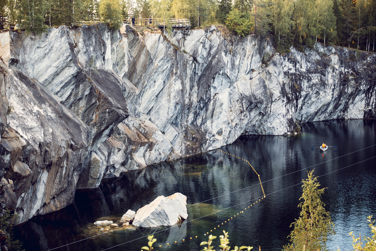 - пройти экскурсию «Подземная Рускеала»: через лабиринт мраморных штолен к Большому колонному залу с озером;