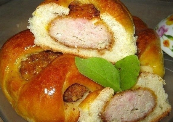 🔹 Положите котлету в центр, заверните тесто, оставив верх открытым.