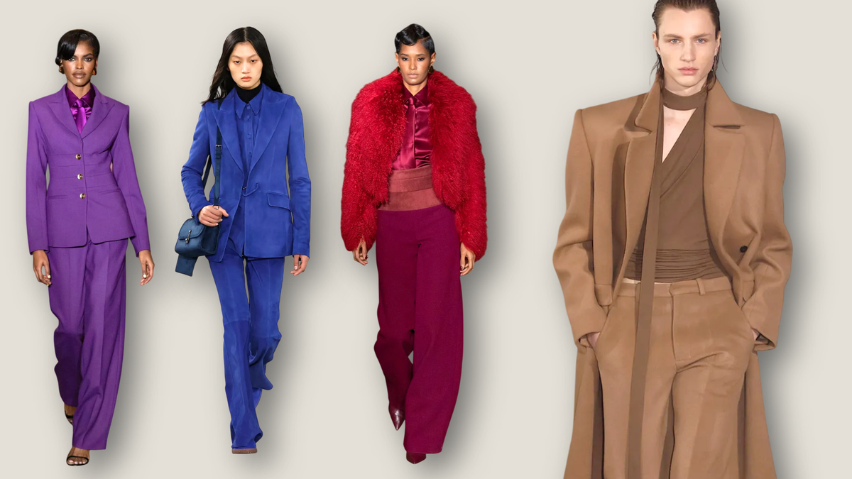 В костюмных решениях (коричневый, бордовый, горчичный вельвет) крой строго прямой, с акцентом на классику. У бархата (изумруд, шоколад, серо-коричневый) силуэт более расслабленный и гибкий.