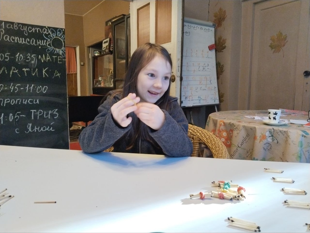 Каждый год 1 сентября во втором классе мы считаем спички. Высыпаем на стол целую кучу, но считать по одной — не лучший способ: можно ошибиться, и тогда что? Пересчитывать заново? В этом году мы считали так: Вера пять спичек кладёт головками вниз, Миша пять спичек кладёт головками вверх: 5 + 5 = 10 На столе стали появляться кучки по десять спичек. Эти десятки стали связывать резинками в пучки. Потом каждый стал формировать свои кучки и свои пучки. Считать оказалось легко, а связать его резинкой трудно: пальчики работали, выбирая спички из кучи, и ещё больше работали, опутывая петлями один десяток. Пока дети работали, я вспомнил эпизод из книги, которую прочитал летом. Олег Дорман снял документальный сериал «Подстрочник», в котором один десяток и ещё пять серий. В этом фильме Лилиана Зиновьевна Лунгина, которая когда-то перевела нам по-русски истории «Малыша и Карлсона», «Пеппи Длинный чулок», «Эмиля из Лённиберги» и многие другие, рассказывала о своей жизни. Из материалов этого сериала