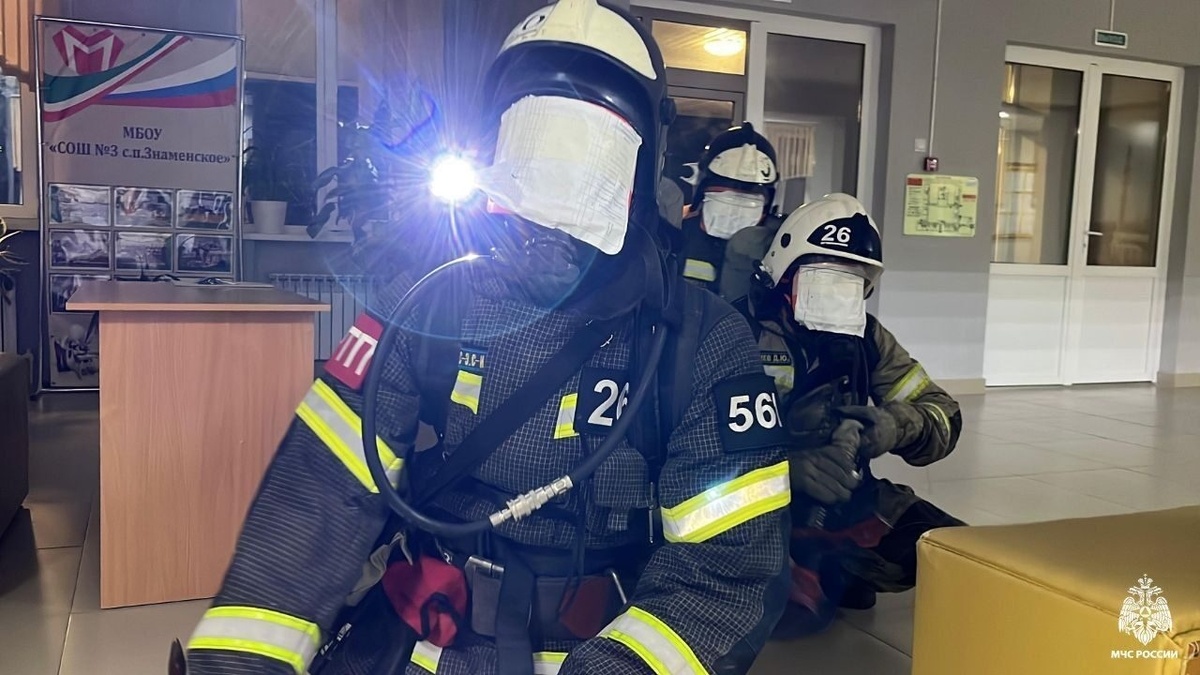 В селе Знаменское сотрудники МЧС России провели ночную тренировку по ликвидации пожара.