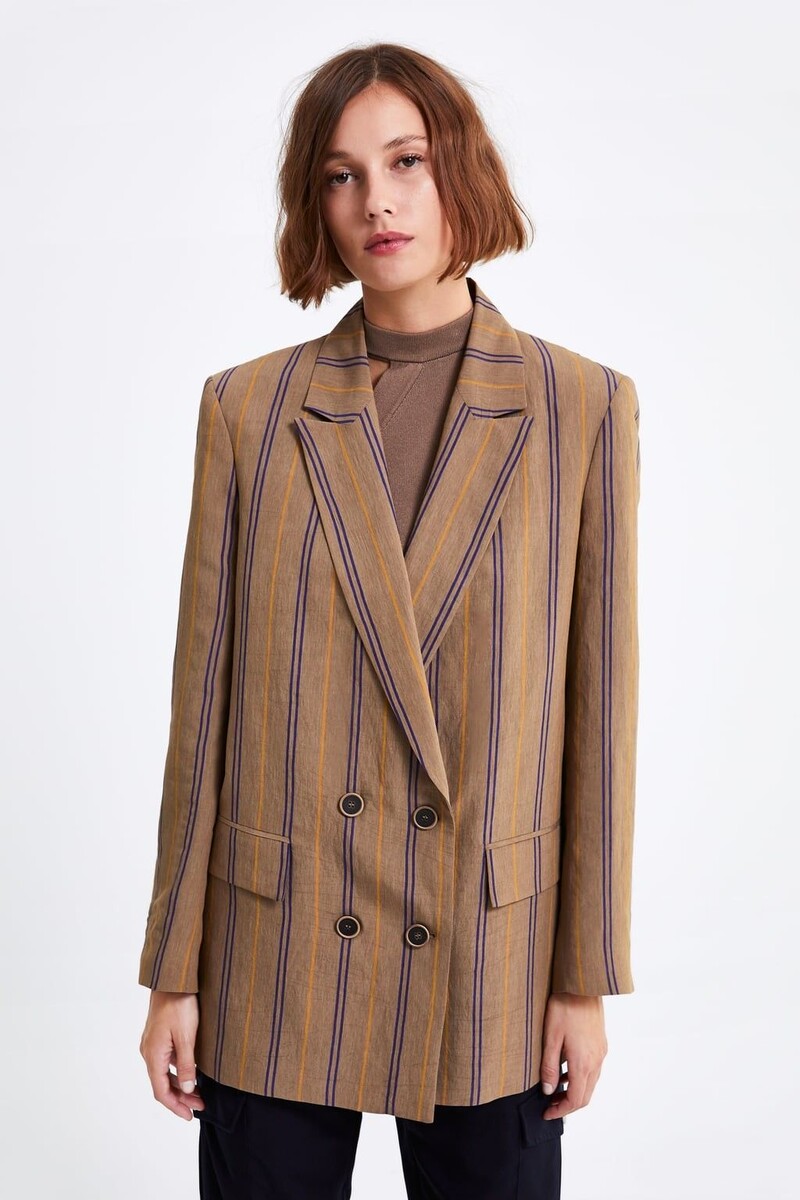 Например: пиджак с металлическими пуговицами + классические брюки + однотонная водолазка — такой ансамбль сохраняет элегантность, но при этом выглядит современно и стильно.