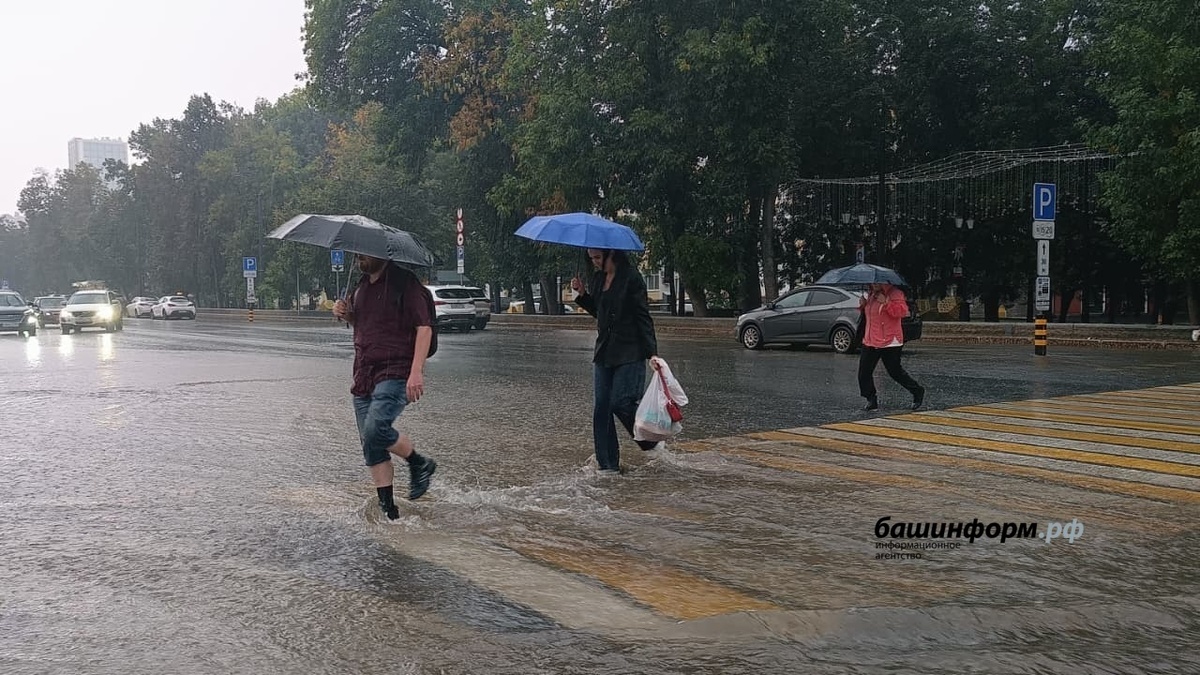 В Уфе за двадцать минут ливня в конце рабочего дня вылилось 15 мм осадков. Этот дождь, согласно прогнозу, должен стать последним событием такого масштаба. Далее, хотя циклон не уйдёт, таких сильных ливней не ожидается — дождевой фронт идёт с запада на восток и к концу недели придёт в Зауралье. В пятницу в Уфе прогнозируется пасмурная и тёплая погода без дождей.