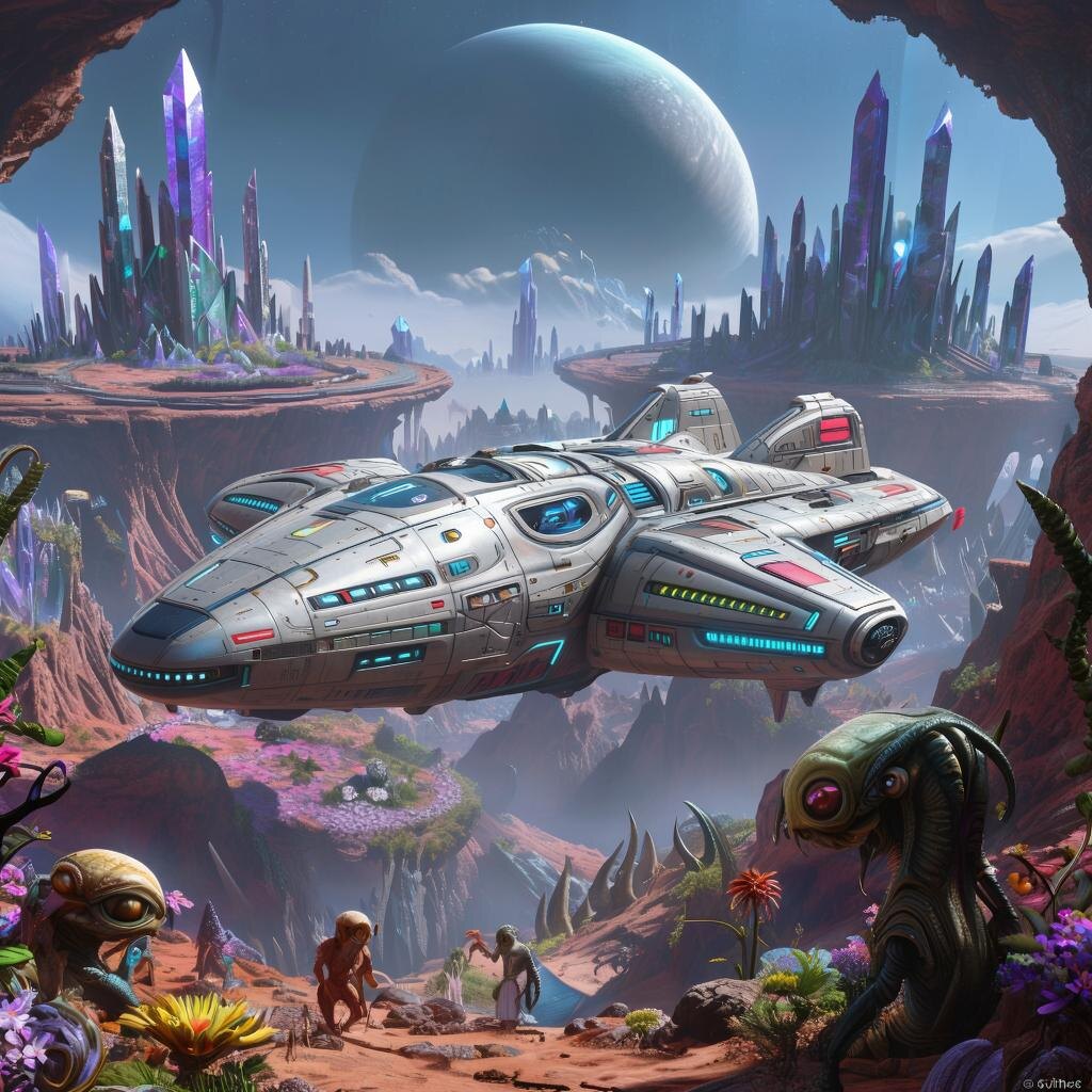 Темной ночью над заснеженной тайгой появился странный светящийся объект. Его форма была необычной — словно огромный кристалл, переливающийся всеми цветами радуги. Жители ближайшего села сначала приняли его за северное сияние, но вскоре поняли, что это нечто большее. Свет постепенно стал ярче, и жители увидели, как из глубины небес медленно опускается корабль невероятных размеров. Он парил над землей, излучая мягкое голубое свечение, которое озаряло всю округу. Люди замерли в изумлении, наблюдая за этим зрелищем. Вскоре из корабля вышли существа, похожие на людей, но с прозрачными телами и крыльями, сверкавшими подобно звездам. Они говорили на непонятном языке, мелодичном и завораживающем. Через некоторое время стало ясно, что они прибыли из другого измерения, где жизнь течет иначе, чем на Земле. Эти существа рассказали людям о своем мире, полном чудес и загадок. Их цивилизация существовала тысячи лет назад, но благодаря особой энергии, которую они называли "потусторонней силой", см