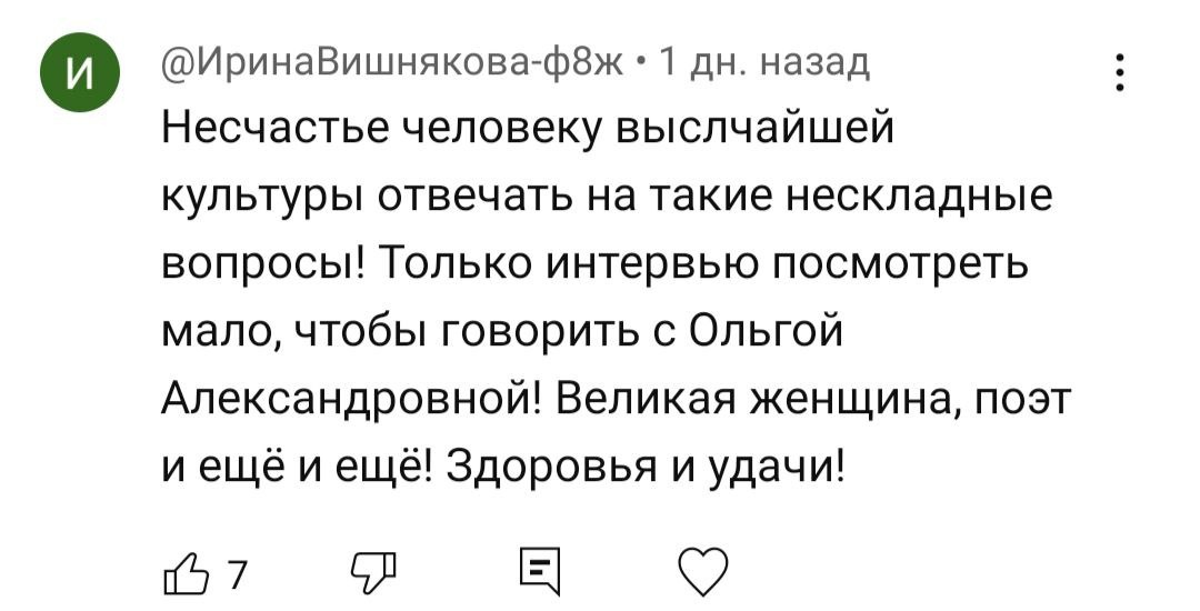 Беспомощный блогер задаёт нескладные вопросы в безобразном формате Неделю назад я сделал стрим с Ольгой Александровной Седаковой. Стрим вышел довольно неудачным – я ещё в процессе понимал, что беседа идёт по большей части плохо, и мне не удалось это дальше исправить. О том, почему так вышло, писать здесь не хочу, скажу только, что готовился к этому стриму я не меньше, чем ко всем остальным. Интересно другое. При том, что содержательно – это самый неудачный мой стрим, с точки зрения статистики он уже стал одним из самых популярных на канале. Сработал довольно банальный механизм: многие оказались оскорблены моим уровнем ведения диалога и решили высказать своё мнение в комментах, что приводило к тому, что видео попадало в рекомендации и набирало только больше просмотров и лайков. Наверное, никакого серьезного вывода из этой ситуации я сделать не могу – принцип работы соцсетей всегда был известен, в них всегда обсуждалось то, что вызывает самые яркие эмоции, а не то, что сделано качеств