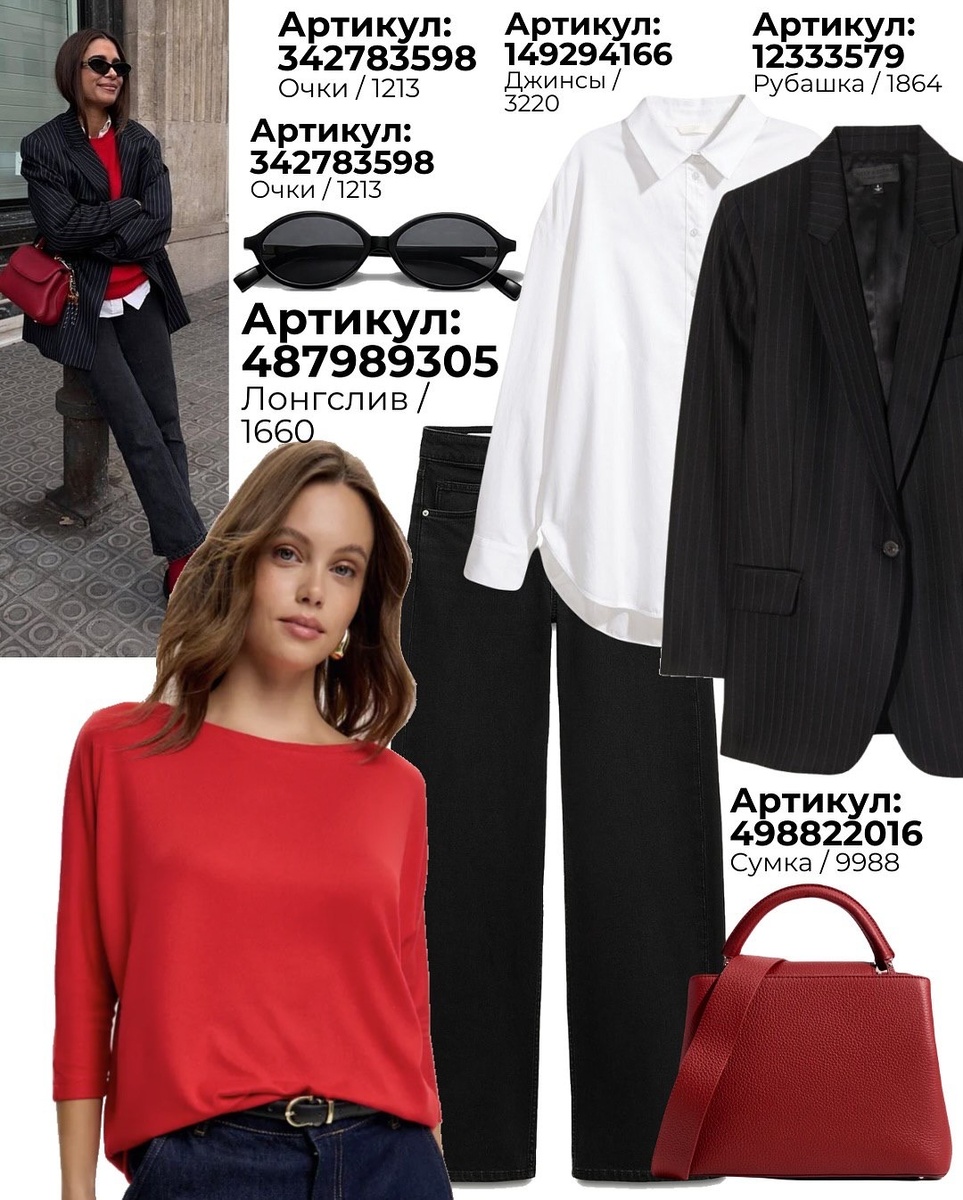 Осень любит контрасты — и именно они делают образ дорогим и собранным. На фото — формула, которая работает всегда: графичная база (чёрные джинсы + белая рубашка) и один яркий акцент красного цвета. Добавим аксессуары и получим универсальный look для офиса, свидания и прогулки. Разбираю каждую позицию с Wildberries по порядку и даю рабочие советы стилиста.