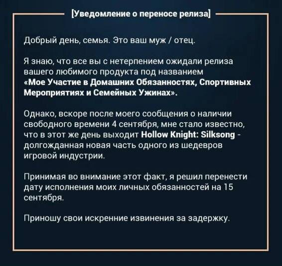 ⚡️ Hollow Knight: Silksong вышла спустя 7 лет ожиданий Сиквел уже прозвали GTA 6 в мире инди-игр, а другие разработчики начали переносить свои релизы, чтобы не попасть под каток хайпа Silksong. Дождались CtrlAltDelights- подписаться