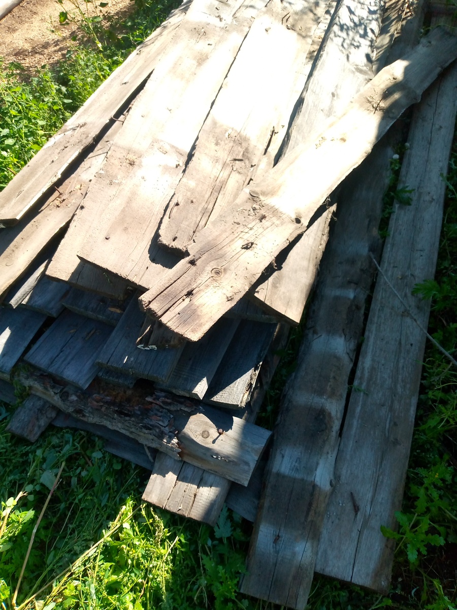 Моя задача сделать демонтаж старого забора в огороде все разобрать и перебрать подготовить на дрова к распилен.Я перебрал доски выдернул гвозди и сложил всё в пачку.