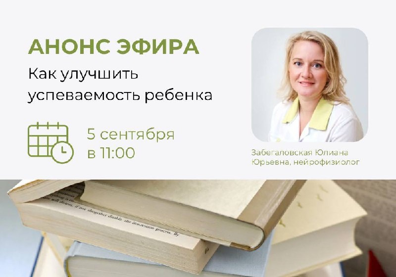 Как улучшить успеваемость ребёнка 🗓 5 сентября в 11:00 Если ваш ребёнок старается, но учёба даётся с трудом — это сигнал, что ему нужна поддержка. Врач-нейрофизиолог Юлиана Юрьевна расскажет, какие факторы способствуют концентрации и хорошей успеваемости в школе. Обсудим: ❔Почему режим сна и отдыха напрямую влияет на успехи в учёбе? ❔Как гаджеты отражаются на внимании и памяти? ❔Как поддержать ребёнка психологически, чтобы снизить школьный стресс? ❔Когда трудности с чтением, письмом или математикой — повод обратиться к специалисту? ❔Какие методы помогают детям сосредоточиться и получать знания с удовольствием? В конце эфира вы сможете задать свои вопросы и получить рекомендации от специалиста. Ставьте напоминание и присоединяйтесь к эфиру в нашей группе ВКонтакте!