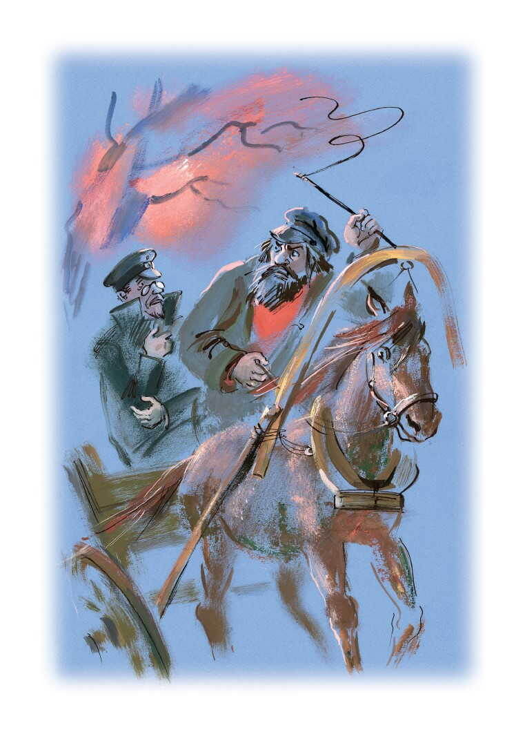 Так как Глеб Гаврилович находился один на один с огромным возницей на пустынной равнине, да ещё в сумеречное время, то ему стало не по себе от попутчика...