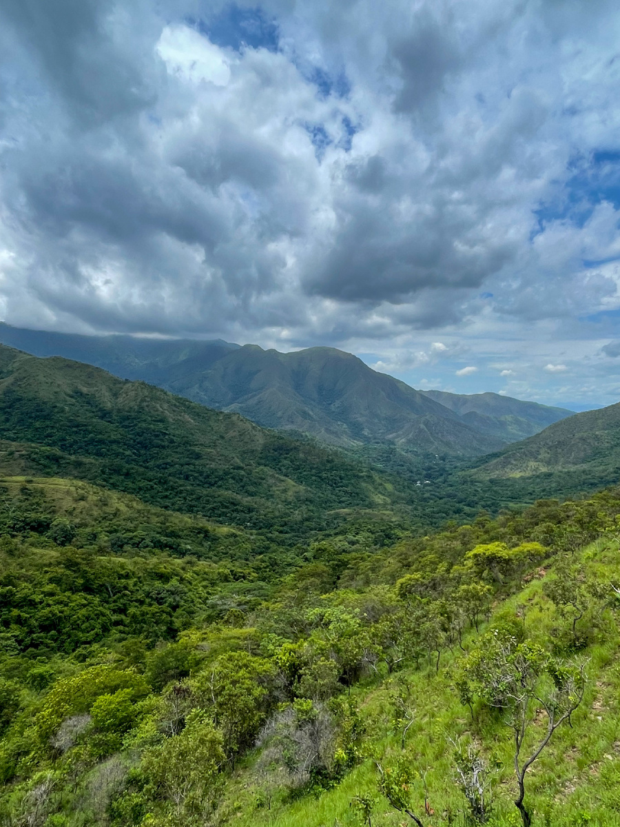 Пришлось снова повторять вчерашние приключения - пробираться по зарослям вниз по склону, совершенно не видя никаких просветов. Но было морально проще - утро, светло, дождя не было, да и по расстоянию пройти оставалось немного. И мы знали, что в пункте назначения у нас есть, где остановиться! Луис (тот, который мотоциклист из Гуакары) дал нам наводку на своего приятеля, местного художника по имени Хорхе, к нему мы и держали путь.