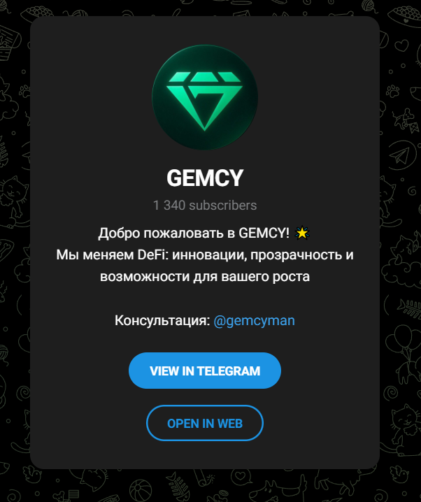 Все что нужно - ПОДПИСАТЬСЯ и прочитать закрепленный пост 💸 Официальный сайт GEMCY — это фактически лендинг с минимальным описанием. Никто не знает, откуда взялась