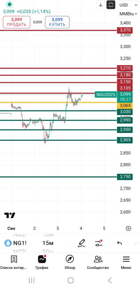 Экономические данные на рынке США сегодня.🇺🇸🔋 1. Объём запасов природного газа от EIA (данные за 29 августа) Предыдущий: +18B Ожидание: +54B Фактически: +55B NGU5(сентябрь) Точка вращения 🪩 - газ NGU5 (сентябрь) - (3.065 - 3.065 выше этого значения - лонг в приоритете, закреп ниже этого значения можно искать точки в шорт 🚨 . Уровни сопротивления: ‼️🔴 1- 3.105 2- 3.150 3- 3.180 4- 3.210 5- 3.370 Уровни поддержки: ‼️🟢 1- 3.030 2- 2.990 3- 2.950 4- 2.905 5- 2.750 В газе есть восходящий клин/вульф. Есть дивергенция(объемы падают, цена растет , при чем на двух старших тайм-фрэймах 4ч и дневной график). Я считаю , все что выше 3.1 - это лакомый кусочек для шорта , задерг/манипуляцию на 3.170 не исключаю - основания ликвидность собранная выше 3.150 грех ее не собрать. Падение ожидаю сегодня/завтра в районе 2.9-2.95 на этих уровнях смотреть реакцию. Я контролирую свои риски, ВЫ контролируйте свои! Не является ИИР‼️ ВСЕМ ДОБРА И ПРОФИТА ‼️ #Статистика (с) Banana🍌and Ignas