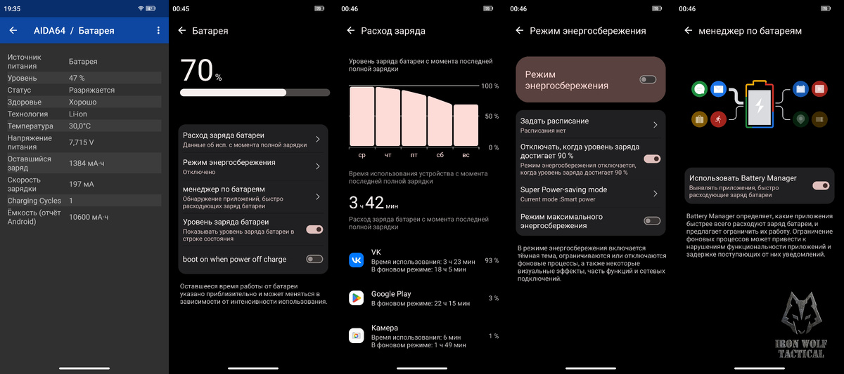 При этом за 1 час аккумулятор при первой зарядке зарядился на 93%. Зарядка в комплекте быстрая на 120 Вт, также смартфон поддерживает беспроводную зарядку на 50 Вт. Приятной особенностью стало то, что в Armor 28 Pro присутствует реверсивная