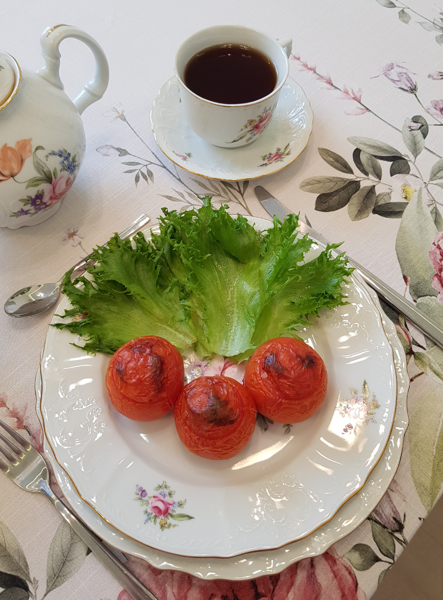 Добрый день, дорогие друзья! Наступают выходные, и это замечательный повод порадовать своих близких изысканной закуской из фаршированных помидоров. Это блюдо станет отличным дополнением к завтраку, украсит праздничный обед или может превратиться в полноценный, но легкий ужин. Для приготовления нам понадобятся: плотные помидоры 9 штук общим весом 1,1 килограмма, 250 грамм фарша из куриных бедер, измельченный репчатый лук, 50 грамм, 50 грамм отварного риса басмати, 1/3 чайной ложки соли, 1/3 чайной ложки черного молотого перца, 1/3 чайной ложки сушеного чеснока. Приготовление: с помидоров срезать верхушку. С помощью ножа или нуазетки удалить мякоть из помидора. Куриный фарш я смешала с измельченным репчатым луком за несколько часов заранее и поставила в холодильник, чтобы мясо слегка замариновалось в луковом соке, но можно смешать лук с фаршем перед обработкой помидоров и оставить его мариноваться 20 минут при комнатной температуре. В куриный фарш с луком добавить соль, перец, рис, че