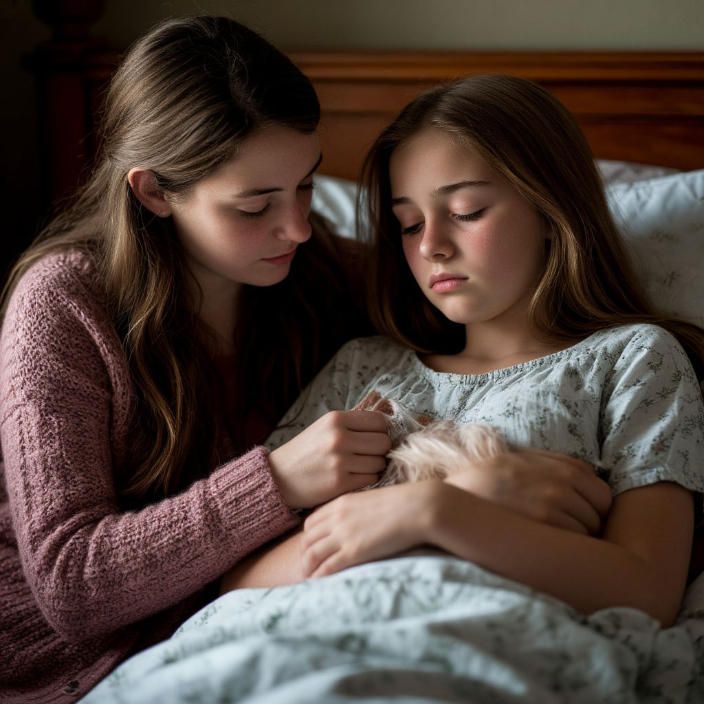 Я застала ее больной, с впалыми щеками, бледной, похудевшей, с уставшей и болезненной улыбкой, в ее глазах была боль, усталость и такая любовь. Я подошла к ней, села на краешек кровати, взяла за руку, прижалась щекой и разрыдалась. Так мы и сидели: я рыдала, прижавшись щекой к ее морщинистой руке, а она гладила меня по волосам, повторяя несколько слов: «Моя девочка, моя милая. Я так тебя люблю». Дочка тоже рыдала, но сидела рядом, не смея шелохнуться. Не смея сказать, что устала и хочет кушать. Просто сидела и тоже не могла успокоиться от слез, от увиденного, от того, что все плачут и что бабушка умирает.