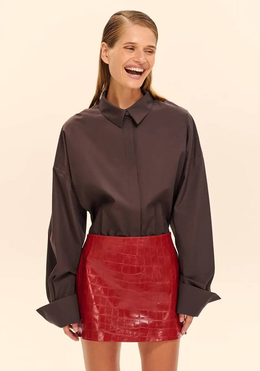 У Choux увидели мини с тиснением под кроко. Название «Bloody Mary» уже всё объясняет, но это не мешает текстуре самостоятельно играть со светом. Носим с оверсайз-рубашками или уходим в горячий вайб и надеваем топ. #ФокусМода_ВещьДня