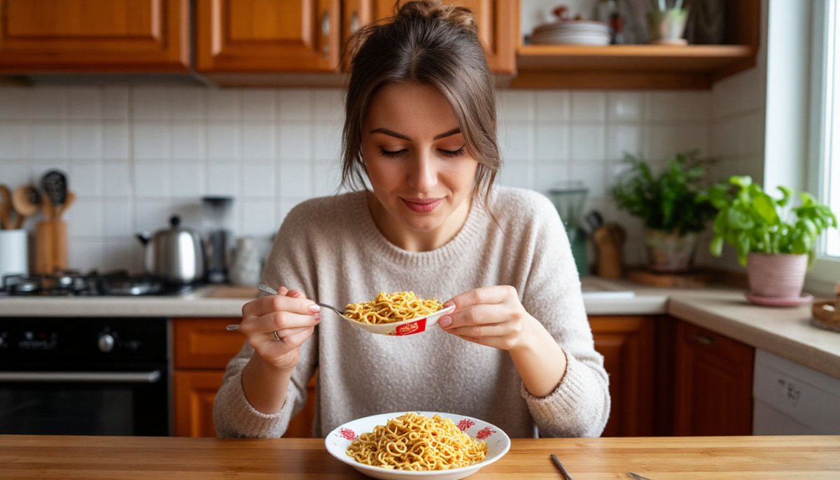 — Ты что, опять свою химию жрёшь? — однажды застукала она меня с дошираком. — Я тебе нормальную еду готовлю, а ты эту дрянь ешь!