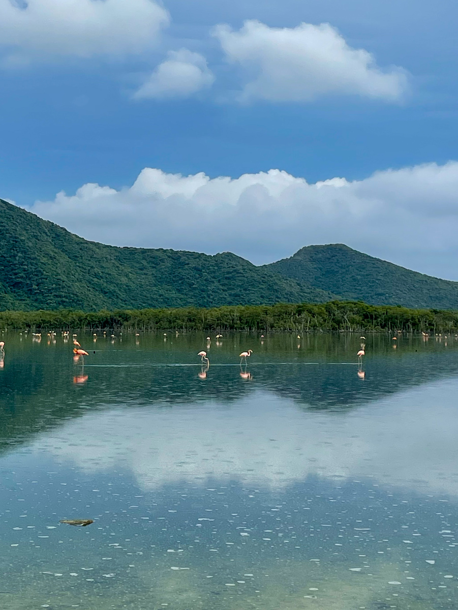 Мы проснулись на заднем дворе у художника, постиранная одежда высохла, у нас была еда, а в десяти минутах ходьбы находилось кафе с вайфаем - день обещал быть очень приятным. Первой точкой по плану был местный пляж - все его очень хвалят, поэтому нужно было обязательно посетить. Но, как оказалось, самое интересное ждало нас не на пляже - он-то как раз оказался самым обычным - а по дороге к нему! Лагуна с розовыми фламинго! Вот это было неожиданно и очень приятно. Близко к ним было не подойти, но мы, как смогли, поснимали их издалека. Фламинго было много, все они разных оттенков розового, только вот, на мой взгляд, пасмурное небо и начинающийся дождь подпортили краски на фотографиях. После этого мы на автобусе добрались до городка Puerto Cabello, а оттуда на лодке доплыли до небольшого, но, можно сказать, райского острова с бирюзовой водичкой - La Isla Larga. Одно из множества приятных событий дня - мы встретили подписчиков! Ехали в одной лодке на остров, Макс услышал рядом русскую речь