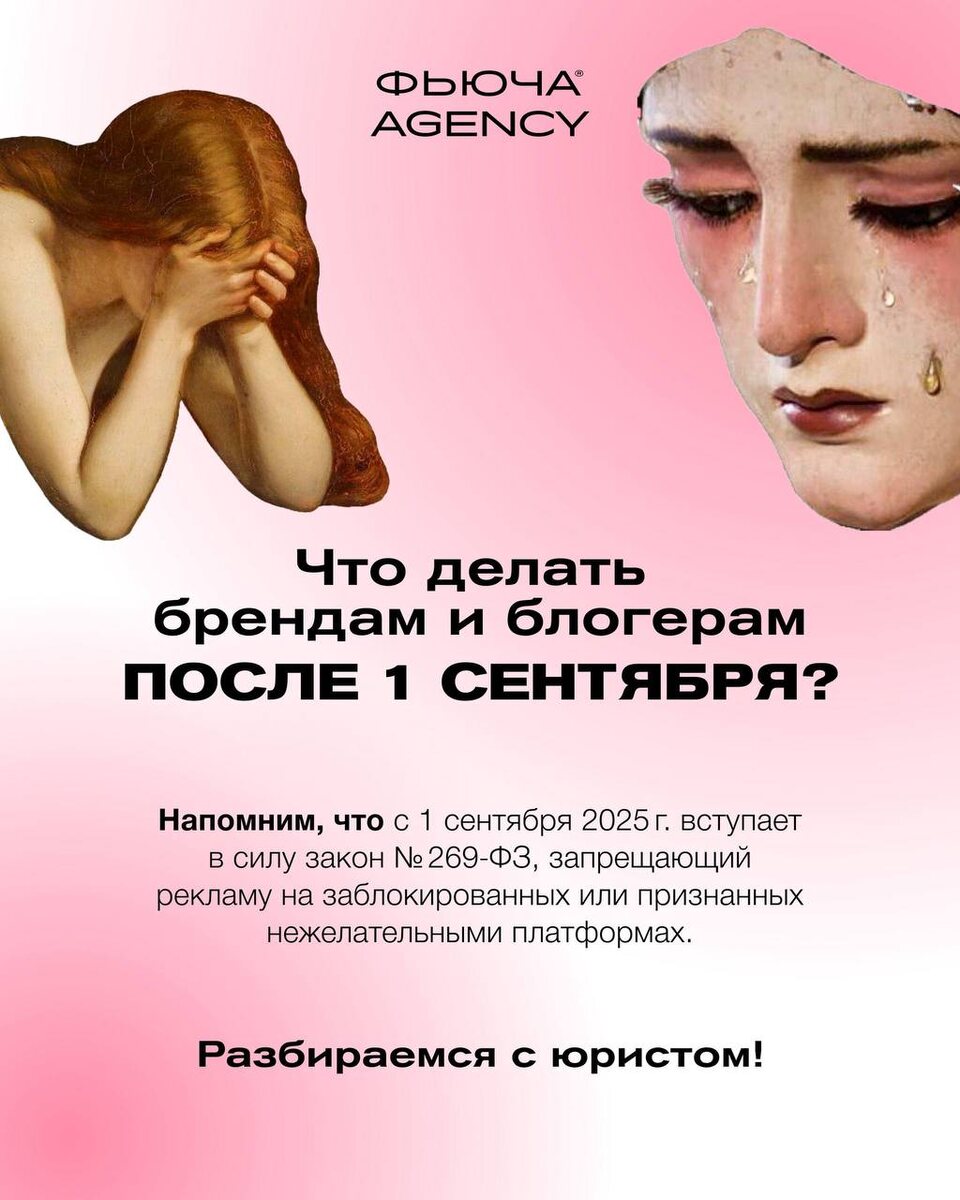 А вы уже разобрались с новыми законами о рекламе в запрещенных соцсетях? В разных источниках можно найти совсем разную информацию, поэтому коллеги из агентства Фьюча лично пообщались с юристами и собрали все самое важное в карточках. Если у вас есть свои вопросы на эту тему — оставляйте в комментариях здесь или в канале агентства.