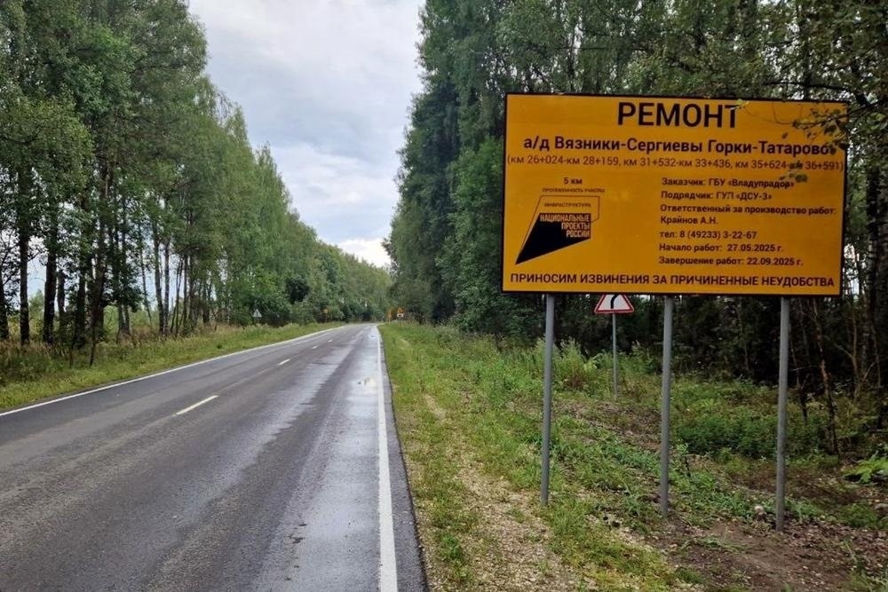 Во Владимирской области продолжается масштабная реконструкция дорог в рамках национального проекта «Инфраструктура для жизни». На трассе Вязники – Сергиевы Горки – Татарово ремонтируют более 5 км: на двух участках уже уложен выравнивающий слой, а на другом приступили к укреплению обочин.