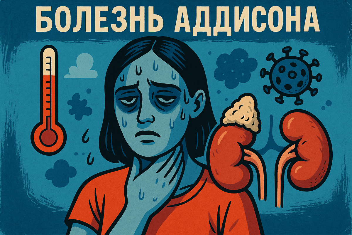 Всех приветствую на своем канале! Я врач из Челябинска. Подписывайтесь, чтобы не пропустить новые и полезные материалы. Болезнь Аддисона (аддисонова болезнь) — что это, почему возникает недостаточность надпочечников, какие симптомы, как диагностируют и лечат. Введение Болезнь Аддисона (аддисонова болезнь) — это редкое состояние, при котором надпочечники не вырабатывают достаточно важных гормонов, в частности кортизола и иногда альдостерона. Из-за этого в организме появляются усталость, слабость, потеря веса и другие проблемы. В этой статье — понятные объяснения, что нужно знать пациенту и когда нужно обратиться к врачу. Аддисонова болезнь — серьёзное, но управляемое состояние. Ранняя диагностика, грамотная заместительная терапия и внимательное отношение к сигналам организма (усталость, потеря веса, гиперпигментация, обильная потливость, головокружение при вставании) позволяют значительно улучшить качество жизни и снизить риск аддисонического криза. Сталкивались ли вы или ваши близкие