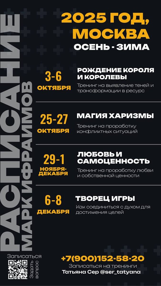 РАСПИСАНИЕ ТРЕНИНГОВ МАРКА ИФРАИМОВА 2025 ГОДА