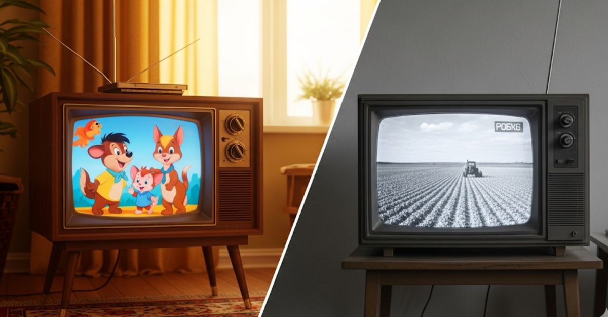 Первые шаги для телевидения Телевидение в середине XX века стало важнейшей частью жизни общества. Но в разных странах оно развивалось по-разному. В СССР телевидение с самого начала контролировалось государством и было частью идеологической системы. В США же оно формировалось как коммерческая индустрия, ориентированная на конкуренцию и прибыль. Именно поэтому к концу 1970-х годов телезритель в Москве и зритель в Нью-Йорке жили в совершенно разных медиамирах. Первый регулярный телеканал в СССР появился в 1938 году в Москве, но развитие прервала война. Массовое телевидение заработало лишь в 1950-х. Долгое время у советского зрителя был всего один канал — Центральное телевидение СССР. В 1960-е годы появилась Вторая программа, затем Третья, а в 1980-е работали ещё 4-й и 5-й каналы. Но фактически даже в крупных городах зрители могли принимать не более 3–4 каналов, а в большинстве регионов — всего один. Причины были как технические (ограниченная сеть вышек и ретрансляторов), так и политически