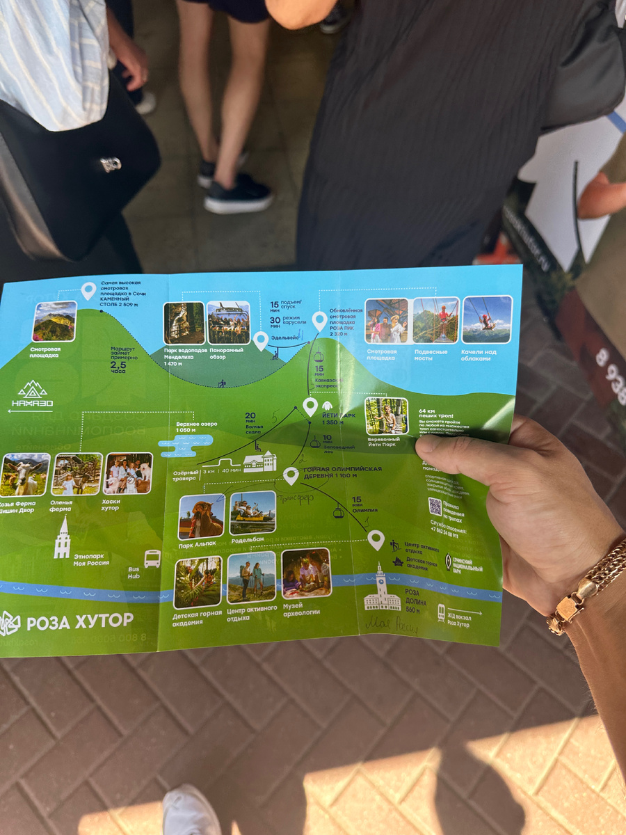 Когда отдыхаешь в Сочи, сложно обойти стороной знаменитый Роза Хутор. Мы решили прокатиться на канатках и посмотреть, что интересного можно увидеть с высоты. Билеты покупали прямо в кассе — очередей не было. Стоимость в среднем 3–4 тысячи рублей на человека, но действуют они целые сутки: можно кататься туда-сюда по всем маршрутам в часы работы. Приехали мы к нижней точке - Роза Долина. Нам сразу посоветовали подниматься сначала на самый верх, иначе к вечеру часть маршрутов закрывается, и можно не успеть. Так и сделали: с пересадками на закрытых кабинках поднялись к обновлённой смотровой площадке РОЗА ПИК. На дорогу ушёл примерно час. Очереди на пересадках были, но кабинки ходят одна за другой, поэтому долго стоять нигде не пришлось. На высоте 2320 метров нас встретил сильный туман, будто стена. Красот толком не увидели, зато ощутили холод и увидели огромную очередь на спуск. После этого спутились к "Йети Парку", там сели на открытую канатку — «Волчья тропа». Вот это уже понравилось бо