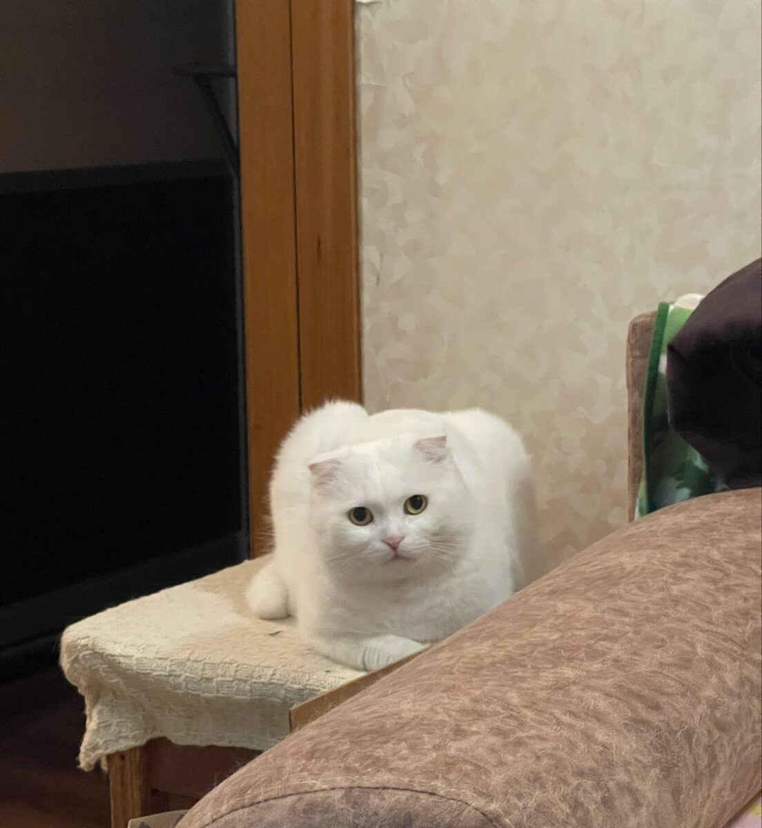 С утра поехал кормить котика бабушки — Беляшика 🐱 (он на фото передаёт всем привет). Бабушку положили в больницу, и в городе сейчас кроме меня из семьи никого нет.