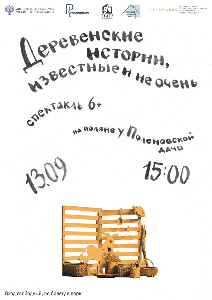 13 сентября в 15:00 в Музее-заповеднике «Абрамцево» выступит Петровский деревенский театр со своим спектаклем «Деревенские истории, известные и не очень» (6+). Мероприятие состоится в рамках проекта «Театр в усадьбах» при поддержке Министерства культуры Российской Федерации, организатор — ФГБУК «Росконцерт».