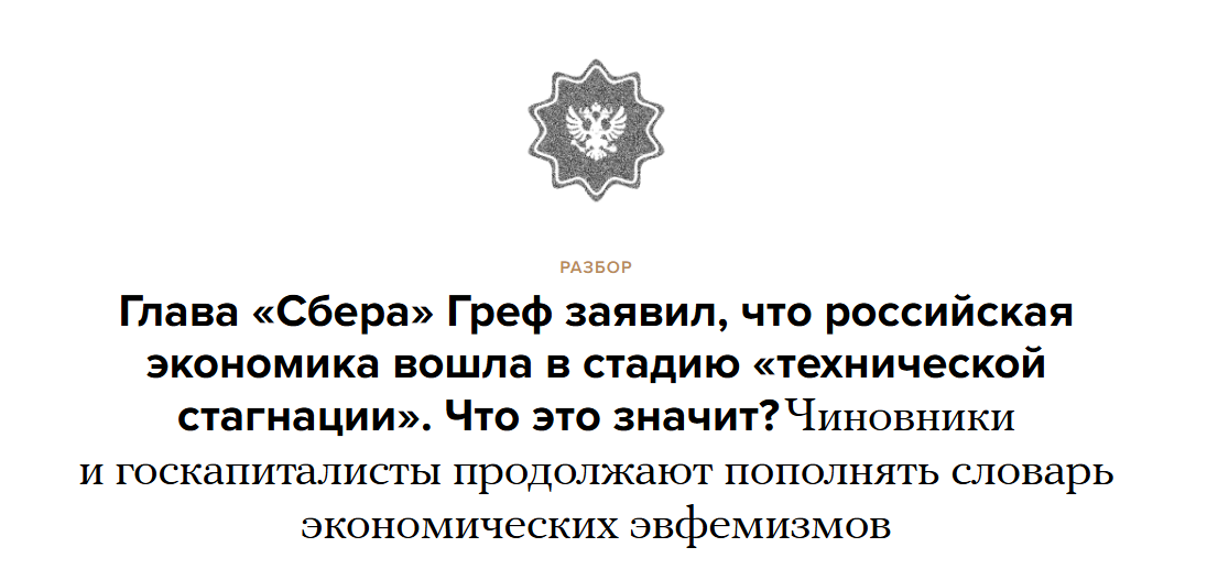 В любом случае динамика экономической просадки, очевидно, тревожит высокопоставленных чиновников и госкапиталистов. «Техническая стагнация» — лишь очередной эвфемизм для обозначения кризисных явлений, расползающихся по экономике.