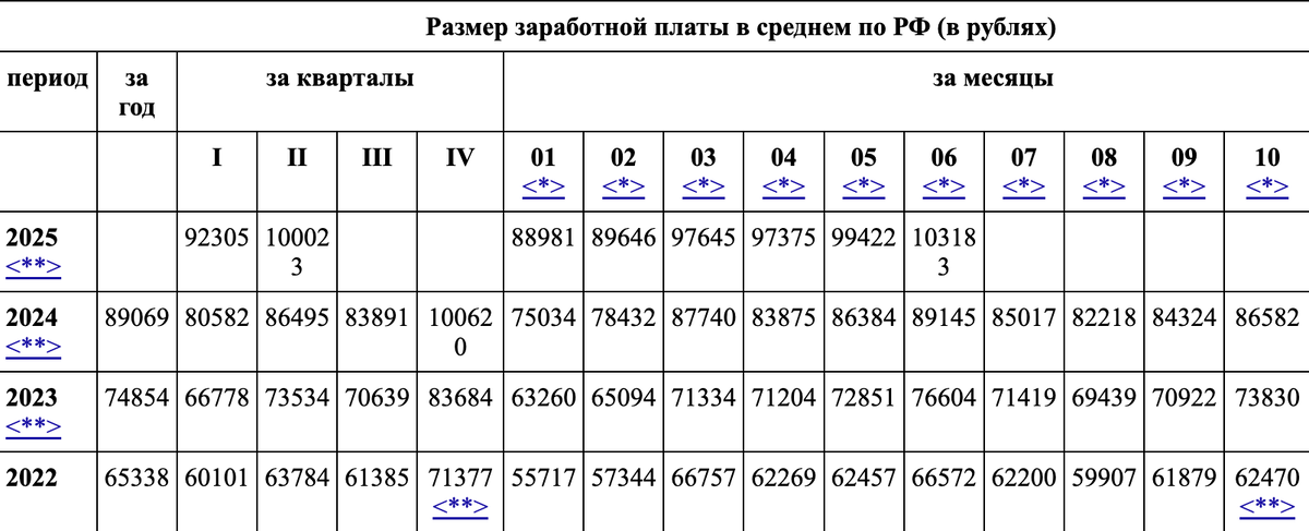 Да, я тоже сначала не поверил. Но государственный Росстат же врать не будет людям, правда? Это был риторический вопрос. Теперь взглянем на факты и цифры. 103 тысячи за июль 2025 года и сто тысяч ровно за второй квартал - получите, распишитесь. Интересно, а где же такие зарплаты? Ну то есть вот просто где? Если посмотреть на цифры внимательнее - с января 2022 года по июнь 2025 средняя зарплата по стране почти удвоилась! Я напомню, что курс доллара в начале 2022 года был 75 рублей, а сейчас - 85. То есть, имеем рост зарплат на 80% в долларов эквиваленте. Неожиданная информация, правда? Сейчас средняя зарплата составляет 1250 долларов (до вычета НДФЛ)! Интересно, что никогда еще за всю историю современной России эта цифра не пробивала и тысячу по итогам года (курс всегда обваливался, когда зарплаты в рублях быстро росли). Нет, я понимаю, что медиана - 66 тысяч, но и это много. Вот у вас в маленьком городе можно прийти с улицы и получать 66 тысяч? Я посмотрел вакансии - ну нет реальных ва