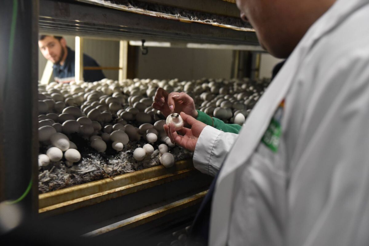 Врио губернатора Курской области Александр Хинштейн посетил компанию "Грибная радуга", одного из крупнейших производителей шампиньонов в регионе, чтобы ознакомиться с полным циклом производства – от компоста до упаковки. Предприятие, работающее с июля 2017 года, производит 34 тысячи тонн грибов в год и обеспечивает работой около 1600 человек. Общий объем инвестиций в "Грибную радугу" – около 10 миллиардов рублей. Компания уделяет приоритетное внимание качеству компоста, контролируемого собственной лабораторией. Проблема запахов, возникающих при производстве, решена внедрением системы очистки воздуха на основе серной кислоты. Современные технологии применяются на всех этапах: автоматизированный контроль влажности и полива, сбор шампиньонов с 16-го дня после загрузки камеры и фасовка в 80 лотков в минуту. Собственный цех по производству ящиков обеспечивает независимость от поставщиков. "Грибная радуга" поставляет продукцию в федеральные сети супермаркетов, обеспечивая четверть всего прои