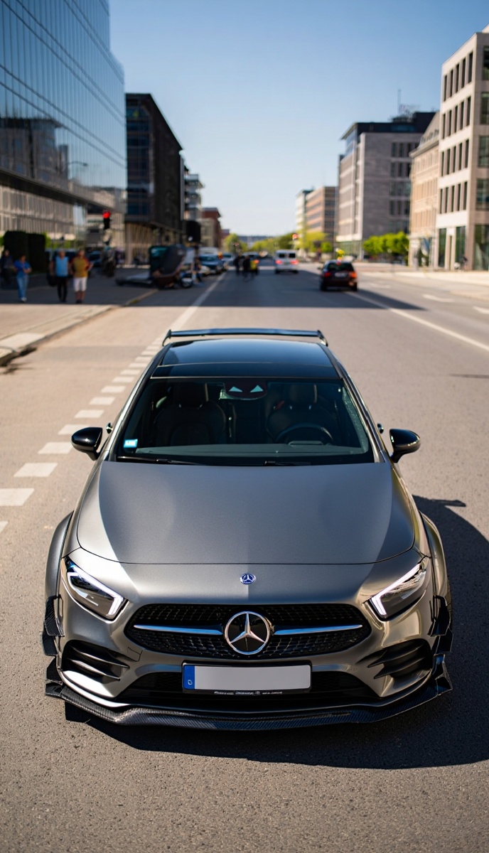 Экстерьер Mercedes-Benz A-Class седан — это элегантный футуризм: аэродинамичные формы с "акульим" носом, узкие LED-фары с дневными ходовыми огнями, массивная решетка в стиле "Predator face", покатая крыша и стильные задние фонари с графикой. Габариты: длина 4419 мм, ширина 1796 мм, высота 1440 мм — компактный, но солидный. В рестайлинге 2022 добавили новые цвета и диски. По сравнению с конкурентами вроде Audi A3 или BMW 1-series, A-Class выглядит более молодежно и агрессивно, без "скучного" консерватизма. Материалы кузова — качественная сталь с антикоррозийной защитой, краска держится хорошо, сборка на уровне Mercedes: зазоры ровные, без скрипов. Но юмор: выглядит как CLA, который решил сэкономить на диете! 😅