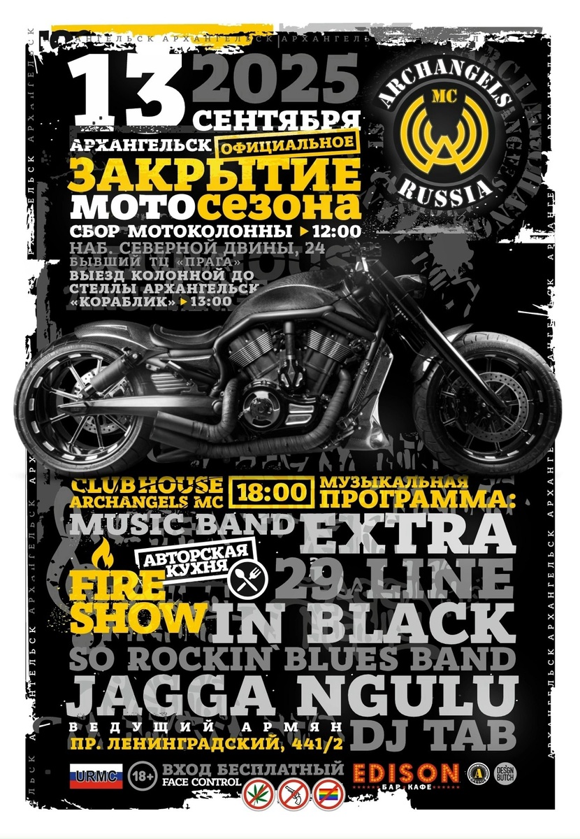 🔁 Дальняк.рф™: 🔥13 дней до закрытия мотосезона 2025 Мы готовы представить программу! - Пять атмосферных и талантливых музыкальных команд - Неповторимый конферансье Армян - Fire show с горячей программой - Вкуснейшие закуски от нашего шефа - Наши друзья и партнеры https://vk.com/edisonbar порадуют своими лучшими коктейлями - Атмосферная музыка от DJ TAB - Бесплатный автобус на afterparty в бар EDISON Всех ждём в clubhouse «Archangels MC” по адресу: просп. Ленинградский 441, корп.2